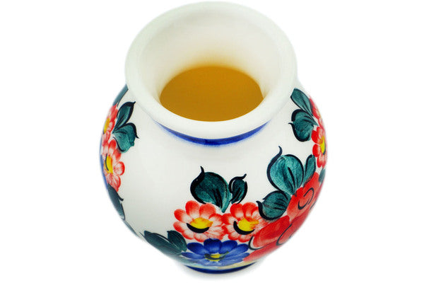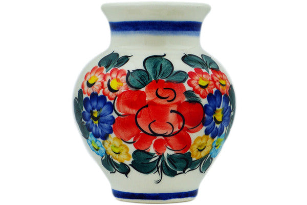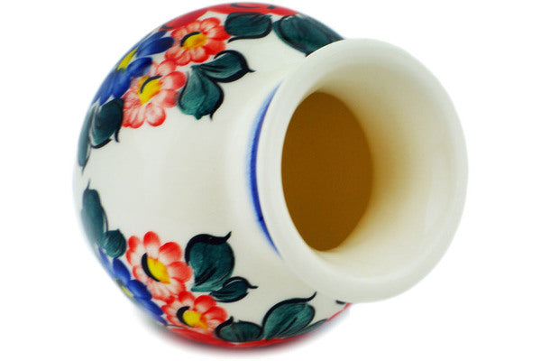 This faience Vase is create by the Fajans Wloclawek factory in Poland. Manufacturer item number H2457N. It is 4¼" high and measures 3½" by 3½". The capacity of this Vase is 11.09 oz (brimful) and it weighs 0.4 lbs. It is part of the Little Flower Patch Collection.