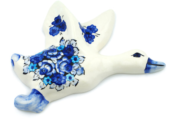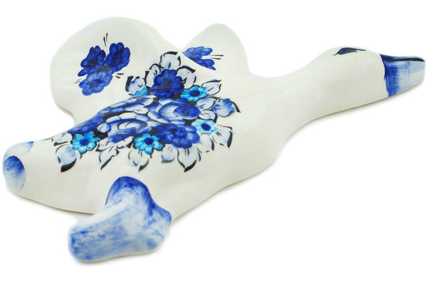 This faience Duck Figurine is create by the Fajans Wloclawek factory in Poland. Manufacturer item number H3898N. It is 1½" high and measures 7½" by 5½". The weight of this Duck Figurine is 0.6 lbs. It is part of the Cobalt Flowers Collection.