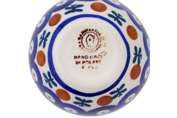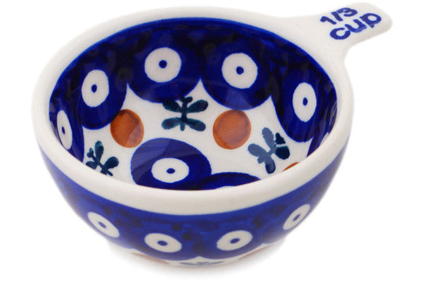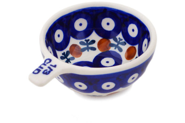 This Polish Pottery Measuring Cup is handmade and handpainted by the Manufaktura factory in Boleslawiec, Poland. Manufacturer item number H8205Q. It is 1½" high and measures 3¾" by 3". The capacity of this Measuring Cup is 2.37 oz (brimful) and it weighs 0.2 lbs. It is part of the Mosquito Collection.