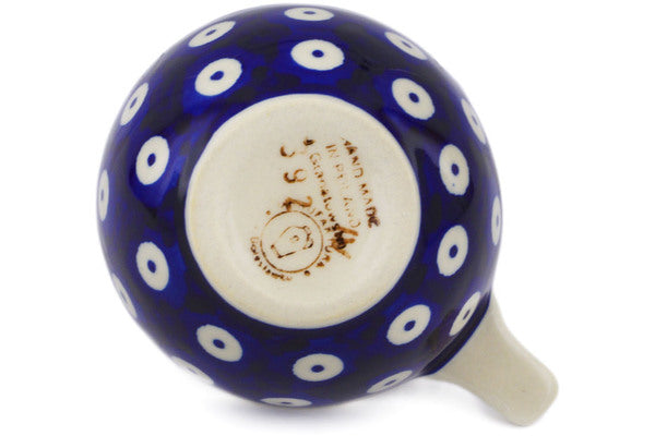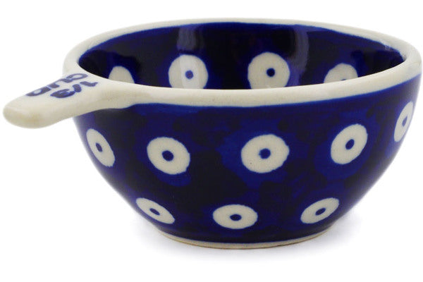 This Polish Pottery Measuring Cup is handmade and handpainted by the Manufaktura factory in Boleslawiec, Poland. Manufacturer item number H6787K. It is 1½" high and measures 3¾" by 3". The capacity of this Measuring Cup is 2.37 oz (brimful) and it weighs 0.2 lbs. It is part of the Peacock Eyes Collection.