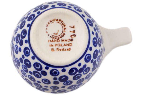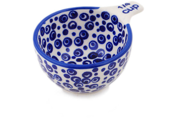This Polish Pottery Measuring Cup is handmade and handpainted by the Manufaktura factory in Boleslawiec, Poland. Manufacturer item number H8188Q. It is 1½" high and measures 3½" by 2½". The capacity of this Measuring Cup is 1.83 oz (brimful) and it weighs 0.2 lbs. It is part of the Bubbling Up Collection.