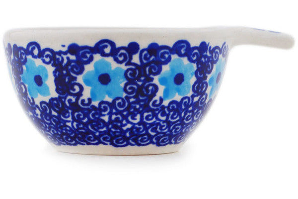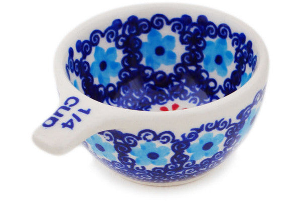 This Polish Pottery Measuring Cup is handmade and handpainted by the Manufaktura factory in Boleslawiec, Poland. Manufacturer item number H4486R. It is 1½" high and measures 3½" by 2½". The capacity of this Measuring Cup is 1.83 oz (brimful) and it weighs 0.2 lbs. It is part of the Floral Sea Collection.