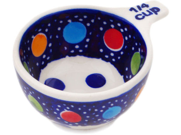 This Polish Pottery Measuring Cup is handmade and handpainted by the Manufaktura factory in Boleslawiec, Poland. Manufacturer item number H8182Q. It is 1½" high and measures 3½" by 2½". The capacity of this Measuring Cup is 1.83 oz (brimful) and it weighs 0.2 lbs. It is part of the Lights In The Sky Collection.