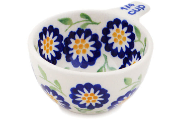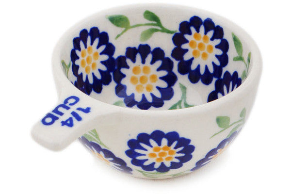 This Polish Pottery Measuring Cup is handmade and handpainted by the Manufaktura factory in Boleslawiec, Poland. Manufacturer item number H8191Q. It is 1½" high and measures 3½" by 2½". The capacity of this Measuring Cup is 1.83 oz (brimful) and it weighs 0.2 lbs. It is part of the Spring Yellow Posey Collection.