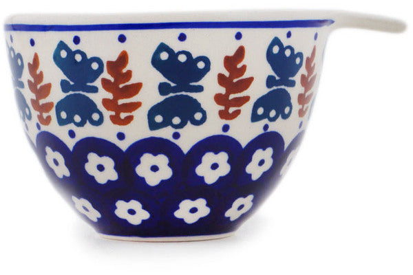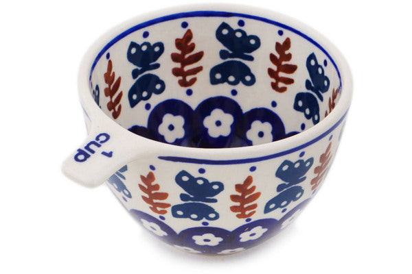 This Polish Pottery Measuring Cup is handmade and handpainted by the Manufaktura factory in Boleslawiec, Poland. Manufacturer item number H8271Q. It is 2½" high and measures 4¾" by 3¾". The capacity of this Measuring Cup is 8.39 oz (brimful) and it weighs 0.4 lbs. It is part of the Daisy Delight Collection.