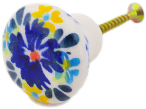This Polish Pottery Drawer Pull Knob is handmade and handpainted by the Ceramika Bona factory in Boleslawiec, Poland. Manufacturer item number H8751Q. It is 1¼" high and measures 1¼" by 1¼". The weight of this Drawer Pull Knob is 0.1 lbs. It is part of the Cornflower Meadow Collection.