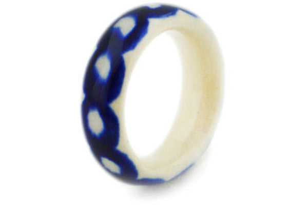 This Polish Pottery Ring is handmade and handpainted by the Manufaktura factory in Boleslawiec, Poland. Manufacturer item number H4697M. It is 1" high and measures 1" by ¼". The weight of this Ring is 0.0 lbs. It is part of the Polka Dot Collection.