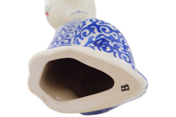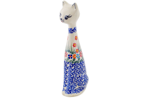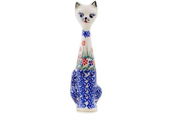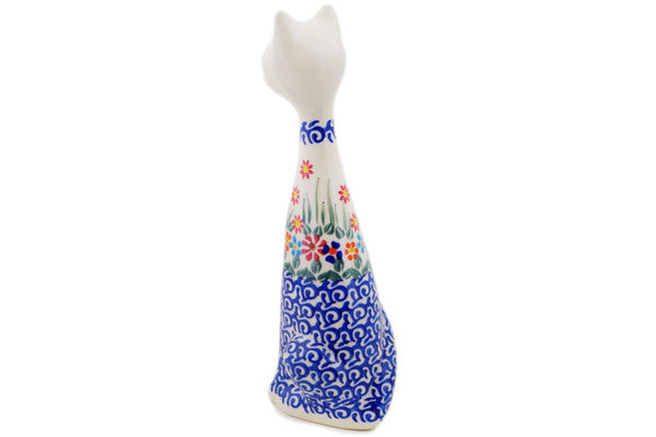 This Polish Pottery Cat Figurine is handmade and handpainted by the Ceramika Bona factory in Boleslawiec, Poland. Manufacturer item number H4006Q. It is 9¾" high and measures 3¾" by 3¼". The weight of this Cat Figurine is 0.9 lbs. It is part of the Blissful Daisy Collection.