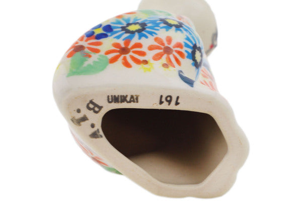 This is a Polish pottery Unikat (Signature) Cat Figurine, which means that it has been hand painted with both sponges and brushes and it is signed by the artist who painted it. Unikat pieces are the most intricate works of art. Larger Unikat items take hours of very careful work to finish.