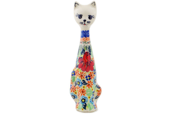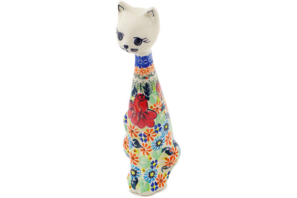 This Polish Pottery Cat Figurine is handmade and handpainted by the Ceramika Bona factory in Boleslawiec, Poland. Manufacturer item number H4960F. It is 9¾" high and measures 3¾" by 3¼". The weight of this Cat Figurine is 0.9 lbs. It is part of the Bold Poppies Collection.