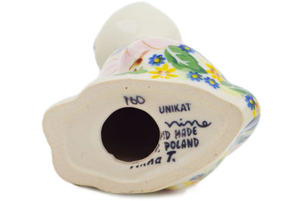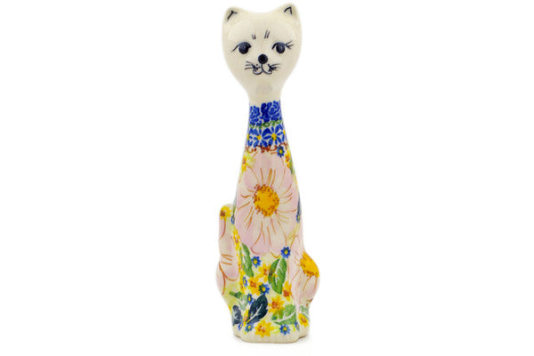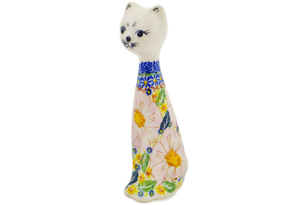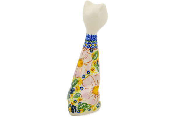 This Polish Pottery Cat Figurine is handmade and handpainted by the Ceramika Nina factory in Boleslawiec, Poland. Manufacturer item number H3580P. It is 9¾" high and measures 3¾" by 3¼". The weight of this Cat Figurine is 0.9 lbs. It is part of the Pink Delight Collection.
