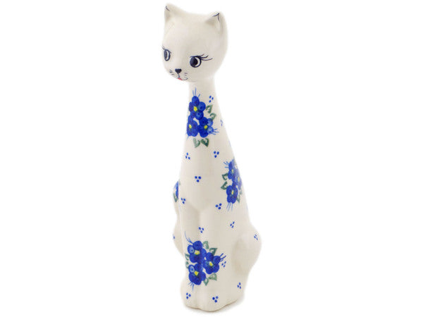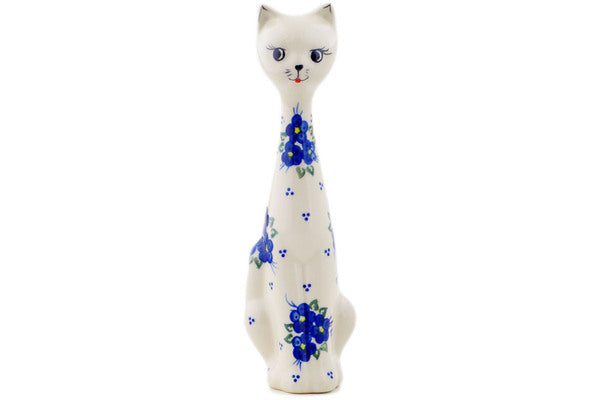 This Polish Pottery Cat Figurine is handmade and handpainted by the Ceramika Bona factory in Boleslawiec, Poland. Manufacturer item number H9622Q. It is 9¾" high and measures 3¾" by 3¼". The weight of this Cat Figurine is 0.9 lbs. It is part of the Poppy Triad Collection.