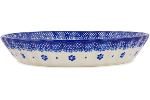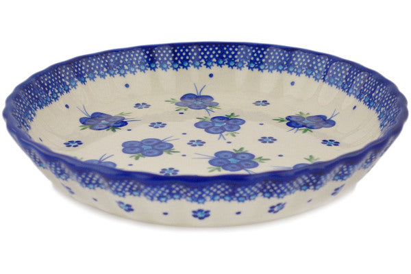 This Polish Pottery Fluted Pie Dish is handmade and handpainted by the Ceramika Bona factory in Boleslawiec, Poland. Manufacturer item number H0479C. It is 2" high and measures 10" by 10". The capacity of this Fluted Pie Dish is 34.15 oz (brimful) and it weighs 2.2 lbs. It is part of the Bleu-Belle Fleur Collection.
