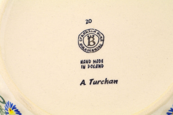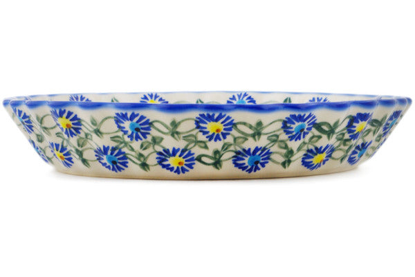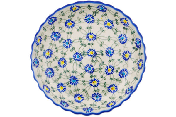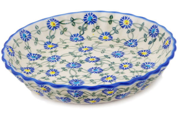 This Polish Pottery Fluted Pie Dish is handmade and handpainted by the Ceramika Bona factory in Boleslawiec, Poland. Manufacturer item number H1985R. It is 2" high and measures 10" by 10". The capacity of this Fluted Pie Dish is 34.15 oz (brimful) and it weighs 2.2 lbs. It is part of the Blue Thistle Beauty Collection.