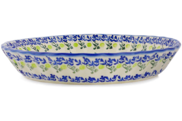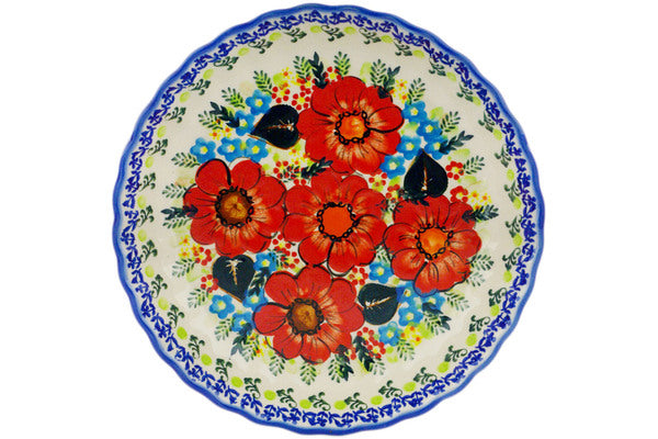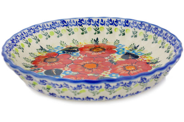This Polish Pottery Fluted Pie Dish is handmade and handpainted by the Ceramika Bona factory in Boleslawiec, Poland. Manufacturer item number H1908G. It is 2" high and measures 10" by 10". The capacity of this Fluted Pie Dish is 34.15 oz (brimful) and it weighs 2.2 lbs. It is part of the Bold Red Poppies Collection.