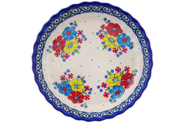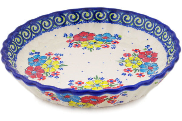 This Polish Pottery Fluted Pie Dish is handmade and handpainted by the Ceramika Bona factory in Boleslawiec, Poland. Manufacturer item number H2119R. It is 2" high and measures 10" by 10". The capacity of this Fluted Pie Dish is 34.15 oz (brimful) and it weighs 2.2 lbs. It is part of the Country Three Collection.