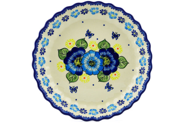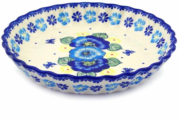 This Polish Pottery Fluted Pie Dish is handmade and handpainted by the Ceramika Bona factory in Boleslawiec, Poland. Manufacturer item number H0158J. It is 2" high and measures 10" by 10". The capacity of this Fluted Pie Dish is 34.15 oz (brimful) and it weighs 2.2 lbs. It is part of the Endless Summer Collection.