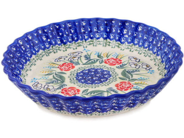This Polish Pottery Fluted Pie Dish is handmade and handpainted by the Ceramika Bona factory in Boleslawiec, Poland. Manufacturer item number H0152P. It is 2" high and measures 10" by 10". The capacity of this Fluted Pie Dish is 34.15 oz (brimful) and it weighs 2.2 lbs. It is part of the Fresh Happiness Collection.