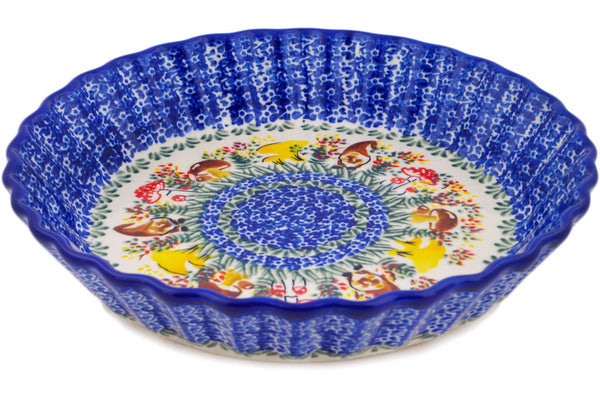 This Polish Pottery Fluted Pie Dish is handmade and handpainted by the Ceramika Nina factory in Boleslawiec, Poland. Manufacturer item number H1521P. It is 2" high and measures 10" by 10". The capacity of this Fluted Pie Dish is 34.15 oz (brimful) and it weighs 2.2 lbs. It is part of the Mushroom Love Collection.