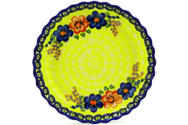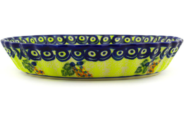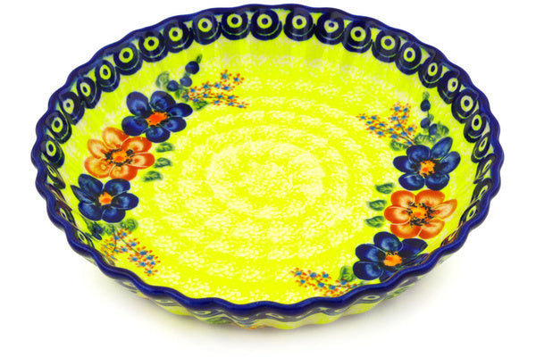 This Polish Pottery Fluted Pie Dish is handmade and handpainted by the Ceramika Bona factory in Boleslawiec, Poland. Manufacturer item number H9225F. It is 2" high and measures 10" by 10". The capacity of this Fluted Pie Dish is 34.15 oz (brimful) and it weighs 2.2 lbs. It is part of the Neon Poppies Collection.