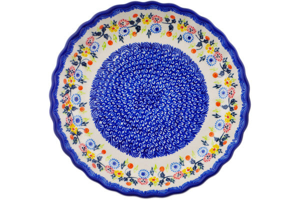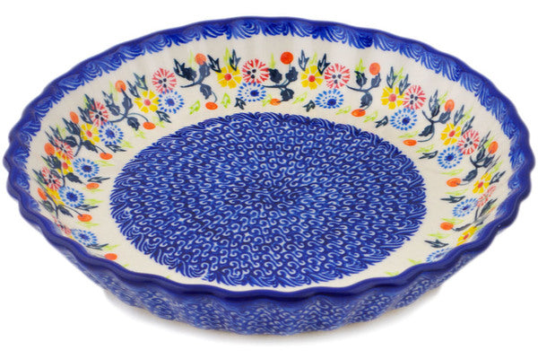 This Polish Pottery Fluted Pie Dish is handmade and handpainted by the Ceramika Bona factory in Boleslawiec, Poland. Manufacturer item number H2246R. It is 2" high and measures 10" by 10". The capacity of this Fluted Pie Dish is 34.15 oz (brimful) and it weighs 2.2 lbs. It is part of the Pastel Spring Wreath Collection.