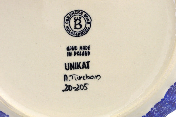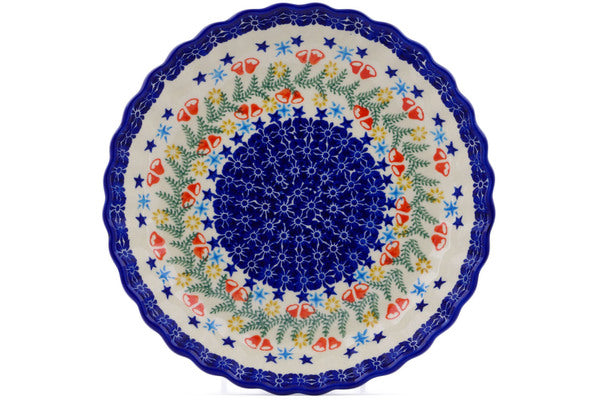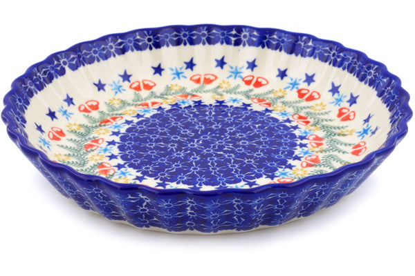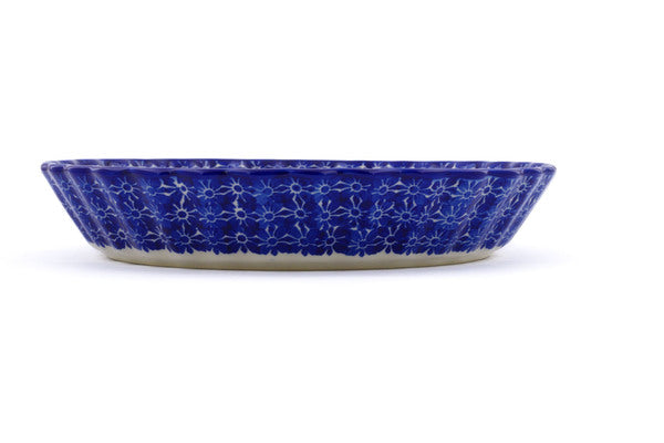 This Polish Pottery Fluted Pie Dish is handmade and handpainted by the Ceramika Bona factory in Boleslawiec, Poland. Manufacturer item number H2210J. It is 2" high and measures 10" by 10". The capacity of this Fluted Pie Dish is 34.15 oz (brimful) and it weighs 2.2 lbs. It is part of the Wreath Of Bells Collection.
