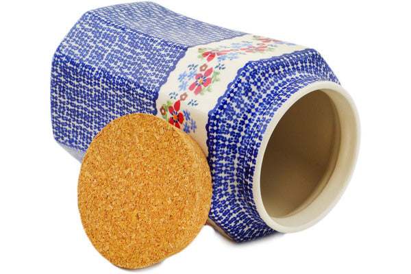 This Polish Pottery Jar with Lid is handmade and handpainted by the Manufaktura factory in Boleslawiec, Poland. Manufacturer item number H0058Q. It is 10¼" high and measures 6½" by 5¾". The weight of this Jar with Lid is 3.9 lbs. It is part of the Red Flower Meadow Collection.
