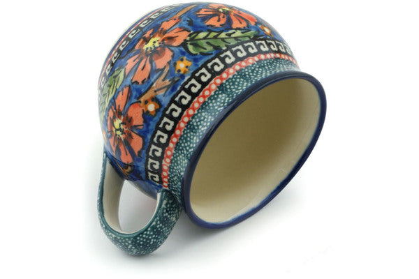 This Polish Pottery Bubble Mug is handmade and handpainted by the Zaklady Ceramiczne factory in Boleslawiec, Poland. Manufacturer item number H4296C. It is 3¼" high and measures 4¾" by 3¾". The capacity of this Bubble Mug is 10.48 oz (brimful) and it weighs 0.7 lbs. It is part of the Poppies Collection.
