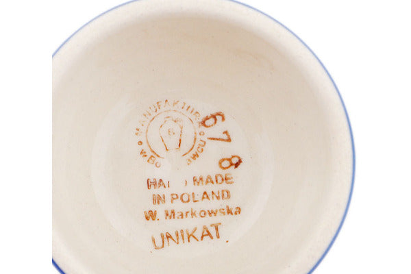 This is a Polish pottery Unikat (Signature) Cappuccino Glass, which means that it has been hand painted with both sponges and brushes and it is signed by the artist who painted it. Unikat pieces are the most intricate works of art. Larger Unikat items take hours of very careful work to finish.