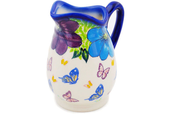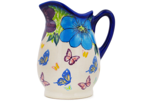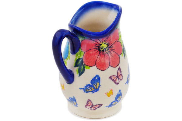 This Polish Pottery Creamer is handmade and handpainted by the Dalia factory in Boleslawiec, Poland. Manufacturer item number H1467R. It is 5" high and measures 4" by 3¼". The capacity of this Creamer is 9.74 oz (brimful) and it weighs 0.9 lbs. It is part of the Bundles Of Spring Collection.