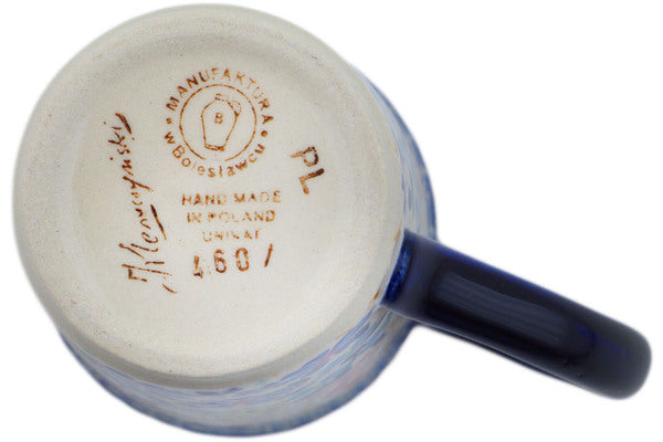 This is a Polish pottery Unikat (Signature) Mug, which means that it has been hand painted with both sponges and brushes and it is signed by the artist who painted it. Unikat pieces are the most intricate works of art. Larger Unikat items take hours of very careful work to finish.