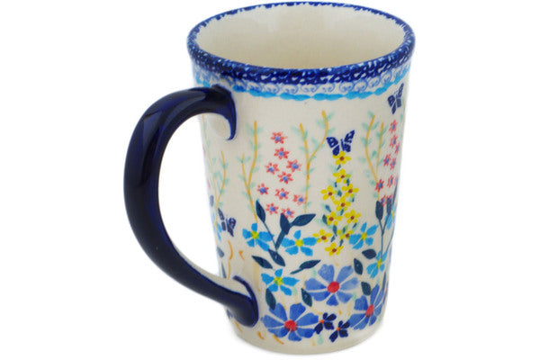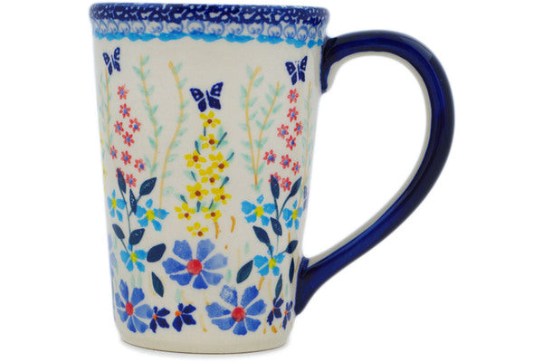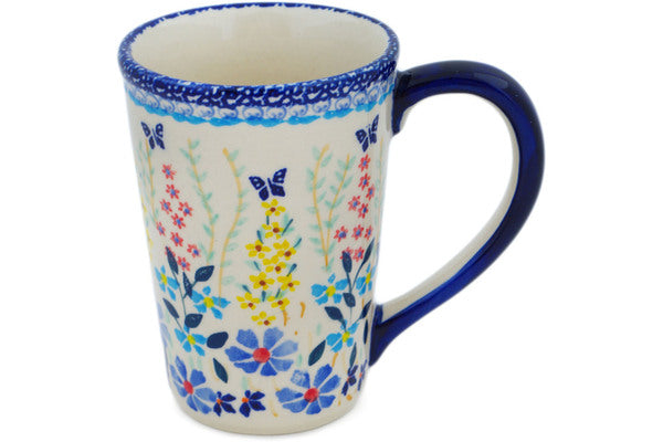 This Polish Pottery Mug is handmade and handpainted by the Manufaktura factory in Boleslawiec, Poland. Manufacturer item number H2370P. It is 4½" high and measures 4¾" by 3¼". The capacity of this Mug is 10.08 oz (brimful) and it weighs 0.8 lbs. It is part of the Breathtaking Butterflies Collection.