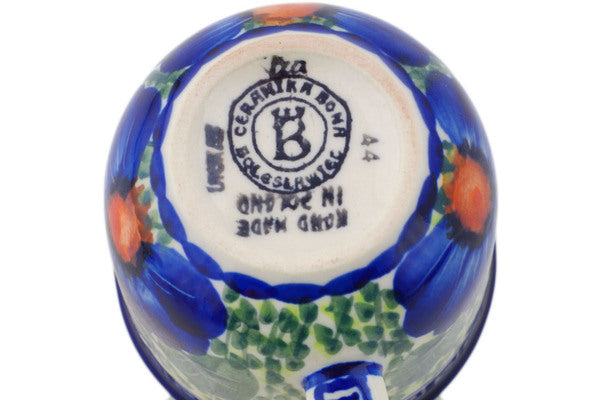 This is a Polish pottery Unikat (Signature) Mug, which means that it has been hand painted with both sponges and brushes and it is signed by the artist who painted it. Unikat pieces are the most intricate works of art. Larger Unikat items take hours of very careful work to finish.