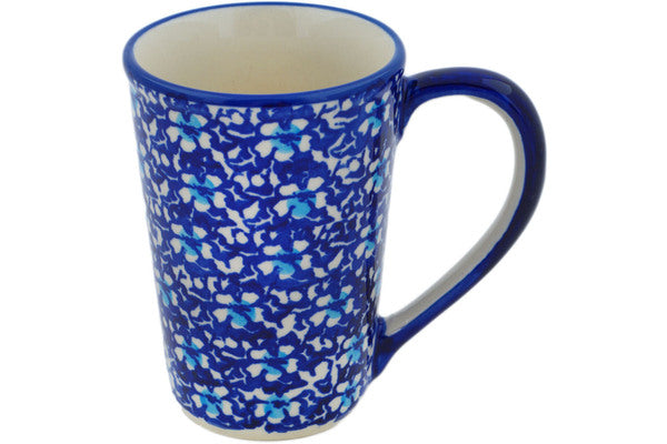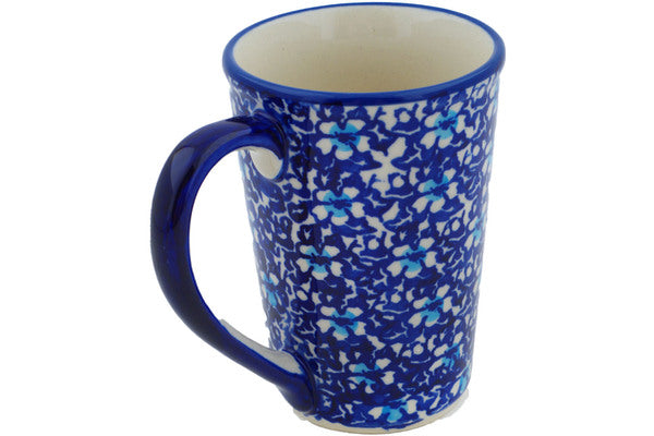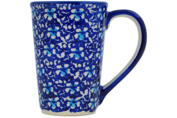 This Polish Pottery Mug is handmade and handpainted by the Manufaktura factory in Boleslawiec, Poland. Manufacturer item number H2256P. It is 4½" high and measures 4¾" by 3¼". The capacity of this Mug is 10.08 oz (brimful) and it weighs 0.8 lbs. It is part of the Flowers On The Lake Collection.