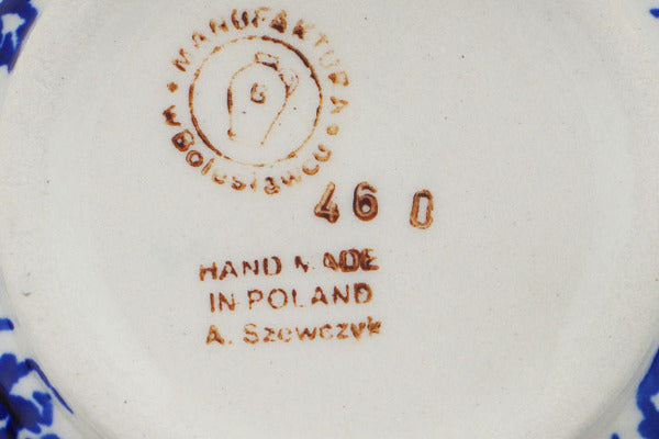 This Polish Pottery Mug is handmade and handpainted by the Manufaktura factory in Boleslawiec, Poland. Manufacturer item number H0593O. It is 3¼" high and measures 4¾" by 3½". The capacity of this Mug is 10.14 oz (brimful) and it weighs 0.8 lbs. It is part of the Flowers On The Lake Collection.