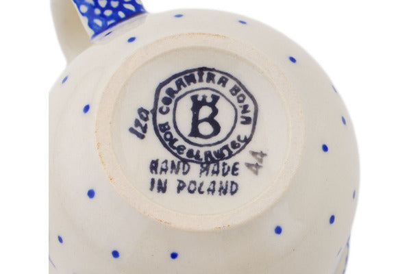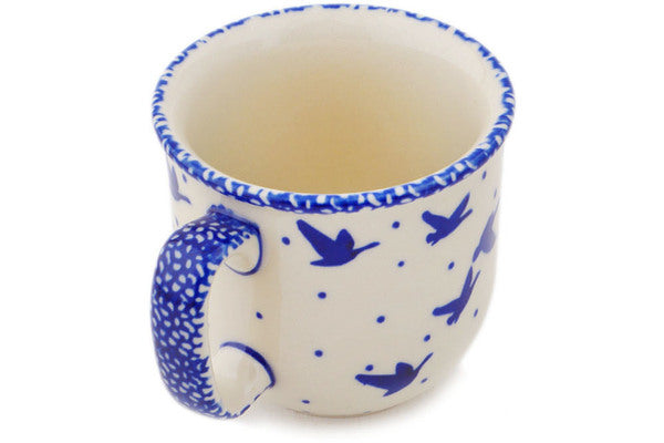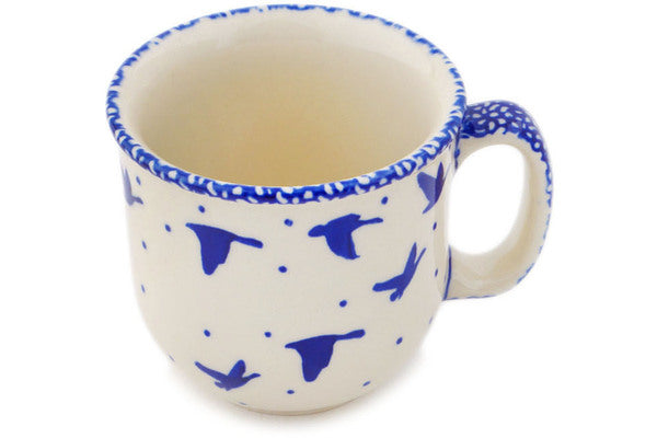 This Polish Pottery Mug is handmade and handpainted by the Ceramika Bona factory in Boleslawiec, Poland. Manufacturer item number H9855Q. It is 3¼" high and measures 4½" by 3½". The capacity of this Mug is 10.14 oz (brimful) and it weighs 0.6 lbs. It is part of the Migrating Collection.