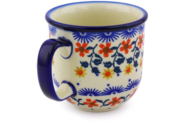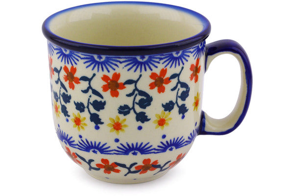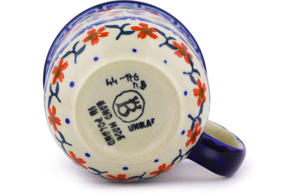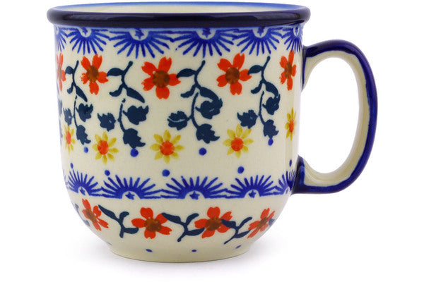 This Polish Pottery Mug is handmade and handpainted by the Ceramika Bona factory in Boleslawiec, Poland. Manufacturer item number H8947I. It is 3¼" high and measures 4½" by 3½". The capacity of this Mug is 10.14 oz (brimful) and it weighs 0.6 lbs. It is part of the Red Sunflower Collection.