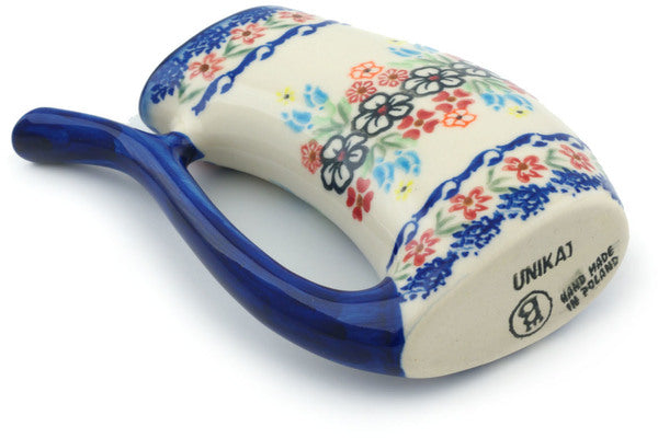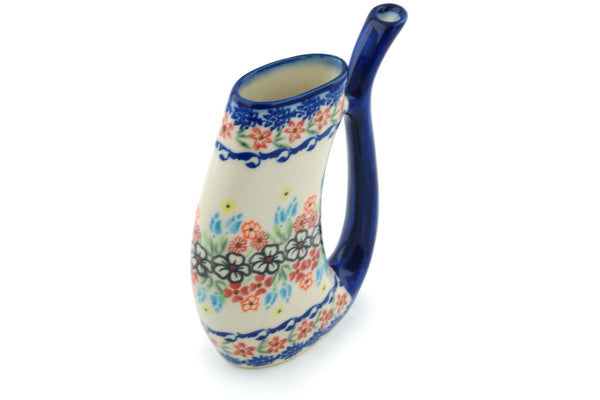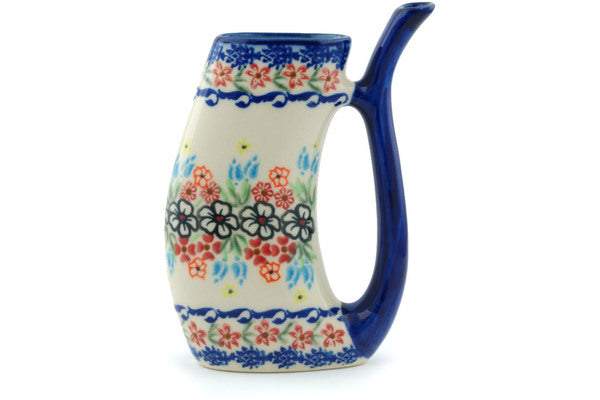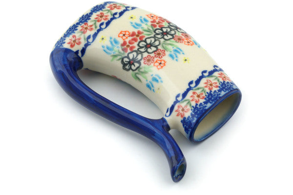 This Polish Pottery Sipper Mug is handmade and handpainted by the Ceramika Bona factory in Boleslawiec, Poland. Manufacturer item number H9151H. It is 6¼" high and measures 4¾" by 1½". The capacity of this Sipper Mug is 10.14 oz (brimful) and it weighs 0.6 lbs. It is part of the Fanciful Ladybug Collection.
