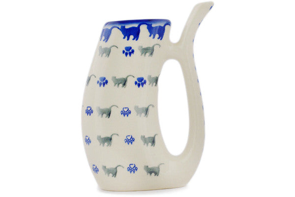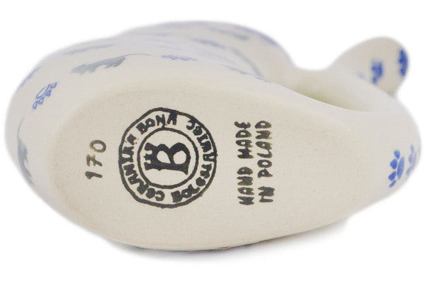 This Polish Pottery Sipper Mug is handmade and handpainted by the Ceramika Bona factory in Boleslawiec, Poland. Manufacturer item number H1792G. It is 6¼" high and measures 4¾" by 1½". The capacity of this Sipper Mug is 10.14 oz (brimful) and it weighs 0.6 lbs. It is part of the Boo Boo Kitty Paws Collection.