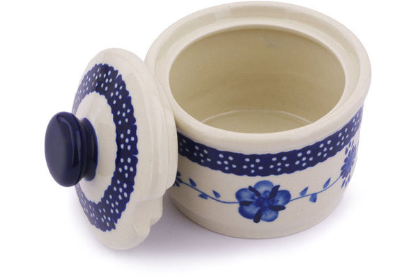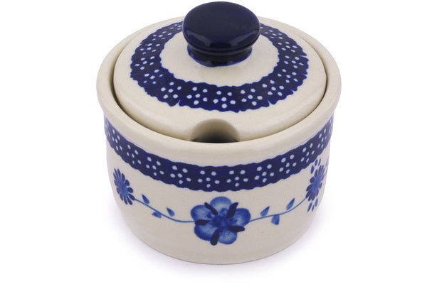 This Polish Pottery Sugar Bowl is handmade and handpainted by the Zaklady Ceramiczne factory in Boleslawiec, Poland. Manufacturer item number H0796G. It is 3¾" high and measures 4¼" by 4¼". The capacity of this Sugar Bowl is 10.08 oz (brimful) and it weighs 0.8 lbs. It is part of the Delicate Poppy Collection.