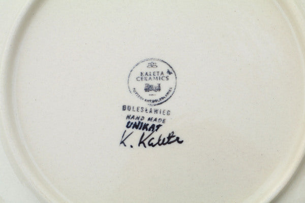 This is a Polish pottery Unikat (Signature) Plate, which means that it has been hand painted with both sponges and brushes and it is signed by the artist who painted it. Unikat pieces are the most intricate works of art. Larger Unikat items take hours of very careful work to finish.