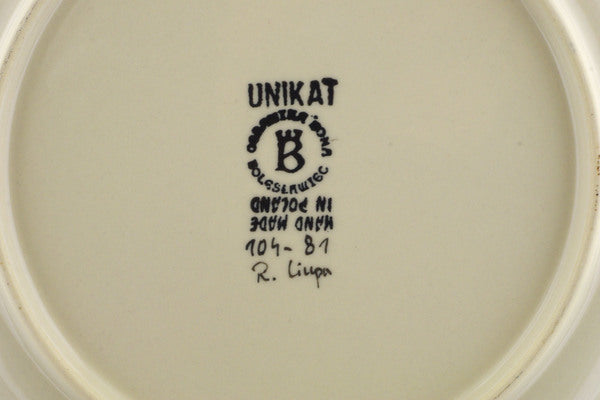 This is a Polish pottery Unikat (Signature) Plate, which means that it has been hand painted with both sponges and brushes and it is signed by the artist who painted it. Unikat pieces are the most intricate works of art. Larger Unikat items take hours of very careful work to finish.