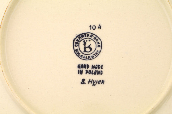 This Polish Pottery Plate is handmade and handpainted by the Ceramika Bona factory in Boleslawiec, Poland. Manufacturer item number H9550Q. It is 1¼" high and measures 10¼" by 10¼". The weight of this Plate is 1.7 lbs. It is part of the Field Of Black Daisies Collection.