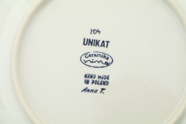 This is a Polish pottery Unikat (Signature) Plate, which means that it has been hand painted with both sponges and brushes and it is signed by the artist who painted it. Unikat pieces are the most intricate works of art. Larger Unikat items take hours of very careful work to finish.