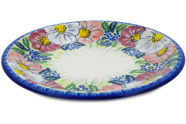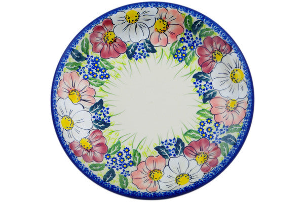 This Polish Pottery Plate is handmade and handpainted by the Ceramika Nina factory in Boleslawiec, Poland. Manufacturer item number H1539P. It is 1¼" high and measures 10¼" by 10¼". The weight of this Plate is 1.7 lbs. It is part of the Maroon Blossoms Collection.