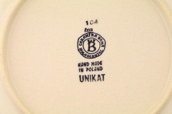 This Polish Pottery Plate is handmade and handpainted by the Ceramika Bona factory in Boleslawiec, Poland. Manufacturer item number H8733Q. It is 1¼" high and measures 10¼" by 10¼". The weight of this Plate is 1.7 lbs. It is part of the Metamorphosis Collection.