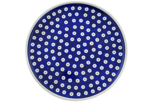 This Polish Pottery Plate is handmade and handpainted by the Manufaktura factory in Boleslawiec, Poland. Manufacturer item number H0940O. It is ½" high and measures 9¾" by 9¾". The weight of this Plate is 1.5 lbs. It is part of the Peacock Eyes Collection.