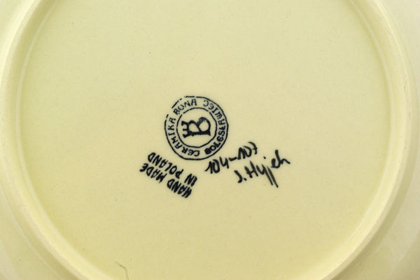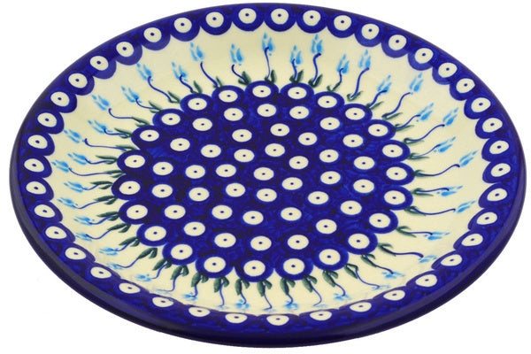 This Polish Pottery Plate is handmade and handpainted by the Ceramika Bona factory in Boleslawiec, Poland. Manufacturer item number H1933G. It is 1¼" high and measures 10¼" by 10¼". The weight of this Plate is 1.7 lbs. It is part of the Peacock Tulip Garden Collection.