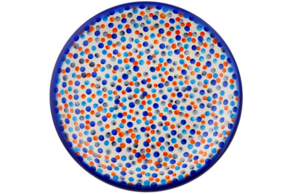 This Polish Pottery Plate is handmade and handpainted by the Ceramika Bona factory in Boleslawiec, Poland. Manufacturer item number H2195R. It is 1¼" high and measures 10¼" by 10¼". The weight of this Plate is 1.7 lbs. It is part of the Polka Dot Frenzy Collection.