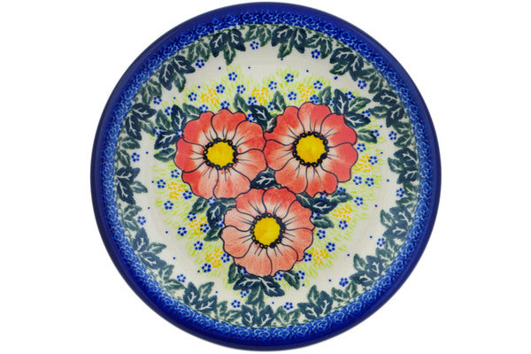 This Polish Pottery Plate is handmade and handpainted by the Ceramika Nina factory in Boleslawiec, Poland. Manufacturer item number H1466P. It is 1¼" high and measures 10¼" by 10¼". The weight of this Plate is 1.7 lbs. It is part of the Red Daisy Delight Collection.
